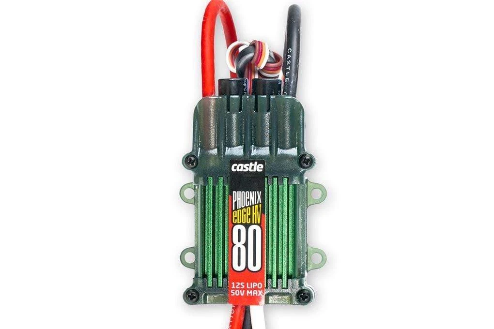 The Castle Creations 80A Phoenix Edge ESC is a fantastic upgrade for any plane. Whether you are looking for more reliability or more speed, this 80A ESC is a good choice. This is if you are looking to use a higher voltage battery, higher performance prop, or larger motor. The Castle 80A ESC comes with bare wires so you can add the connector of your choice. Combine this with the external Castle 10A SBEC for planes with potential for a lot of servo/landing gear amp draw. This ESC is fully programmable using a windows computer. This ESC can be used with a 3S to 12S LiPo.