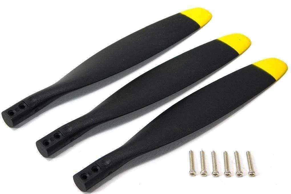 12×7 Three Blade Electric Propeller (Reverse) with Yellow Tips from Flightline – P412072R