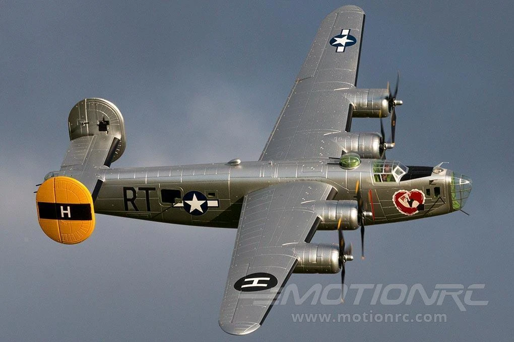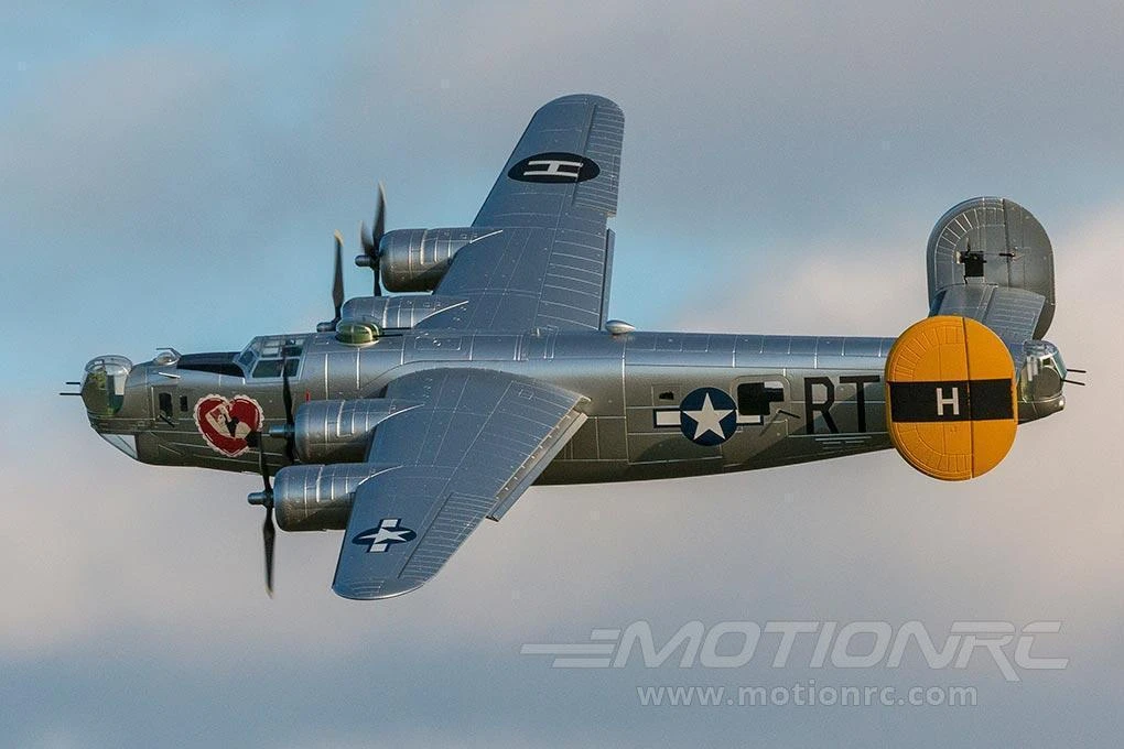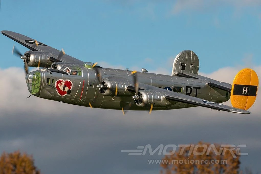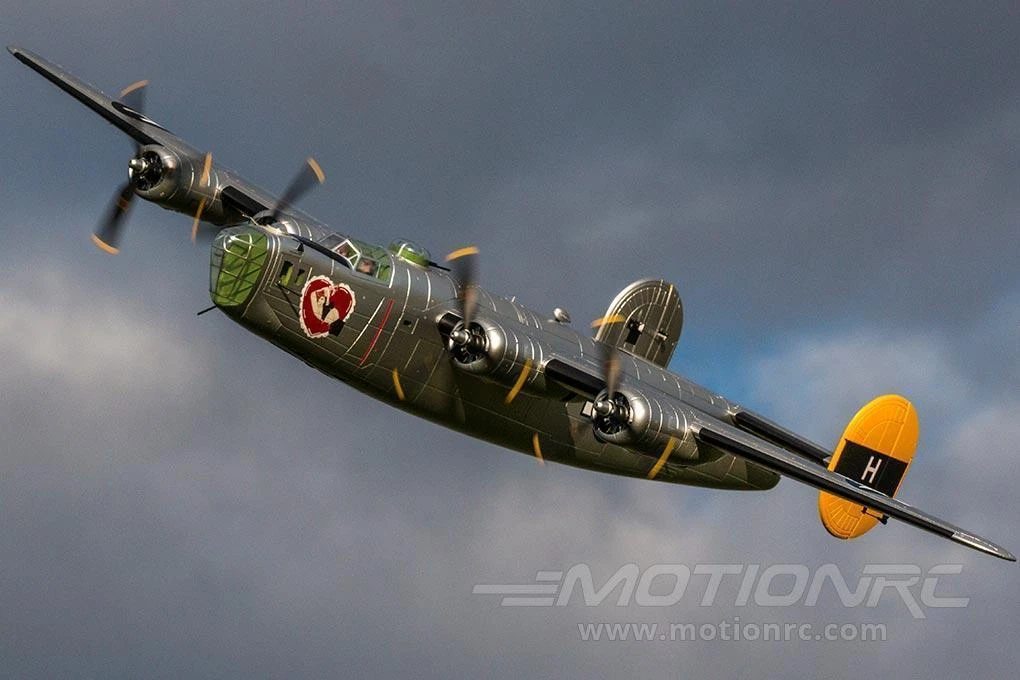 The famed B-24 Liberator is one of the most recognizable WWII aircraft of all time. Serving in every theater of that global conflict, the B-24 fought to bring its brave crews home through unimaginable danger. With humility and reverence, Motion RC is proud to introduce the world’s first foam electric PNP B-24 Liberator, in remembrance of the crews who gave the ultimate sacrifice and those who carry on its memory. The FlightLine B-24 Liberator is approximately 1/16.7 scale, with a 2000mm wingspan and 1230mm length, and is constructed from EPO foam and reinforced with integrated aluminum, carbon fiber, plywood, and plastic structures. Designed with input from the Collings Foundation, which operates the only flying B-24-J, “Witchcraft”.