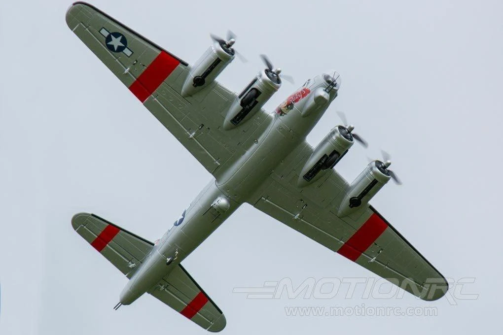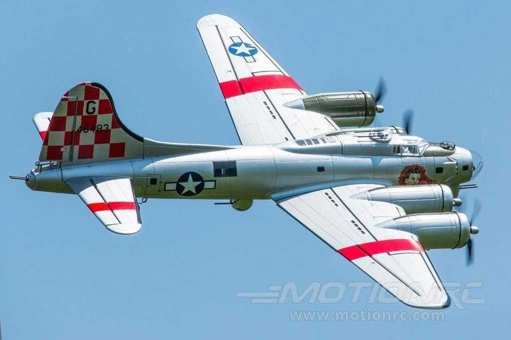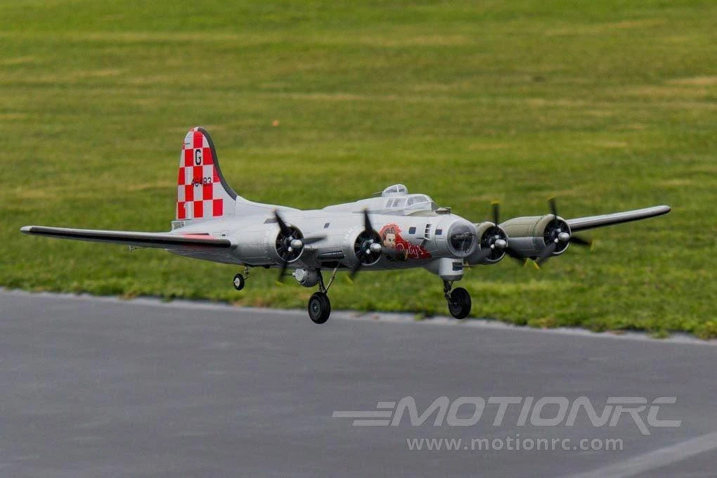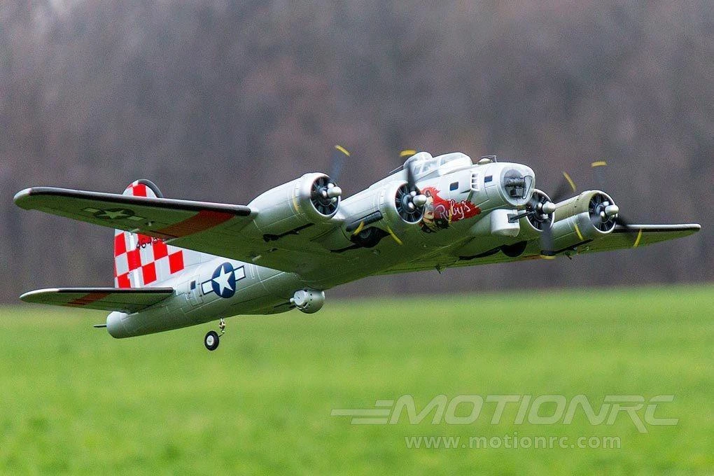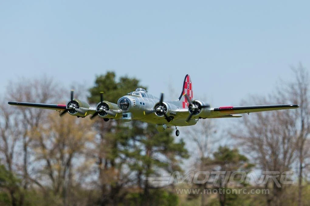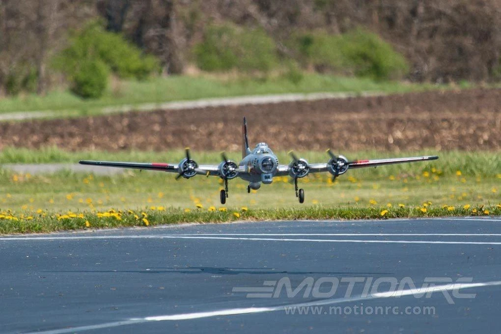 This Freewing B-17 is one amazing plane to see in the sky and on the ground. Not only is the Freewing B-17 huge, but the scale looks, counter-rotating props, split flaps, and robust shock absorbing landing gear really attract attention. With way more than scale power, the Freewing B-17 is very agile for its size and the sound from the four 1350Kv motors cannot be beat. While assembly is simple, do be prepared to spend a few hours building the plane.