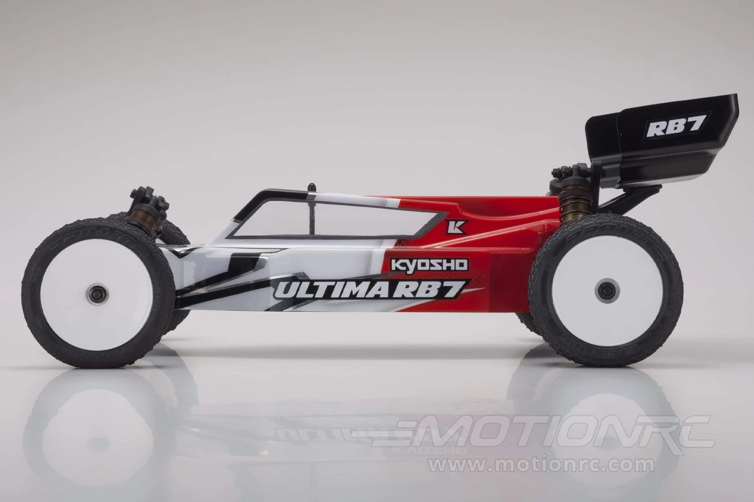 The RB7 represents the next evolution that excels with the increased power & speed on high-grip artificial turf and carpet surfaces of today’s off-road racing scene. Based on the ultra low center of gravity of the RB6.6 low-down midship, the RB7 features improved flex characteristics from its thinner, lighter, and 4mm shorter wheelbase main chassis. Combined with a completely new aero body design, high downforce wing, new front and rear suspension arms and revised ackerman steering knuckles, the new RB7 is ready to take on the competition and it is backed by Motion RC’s world-renowned customer service and technical support. Drive on!