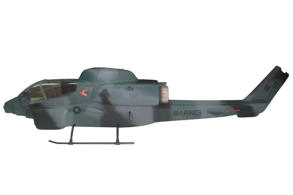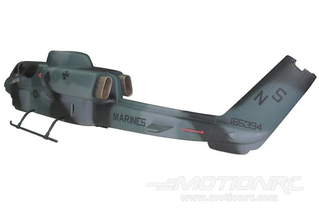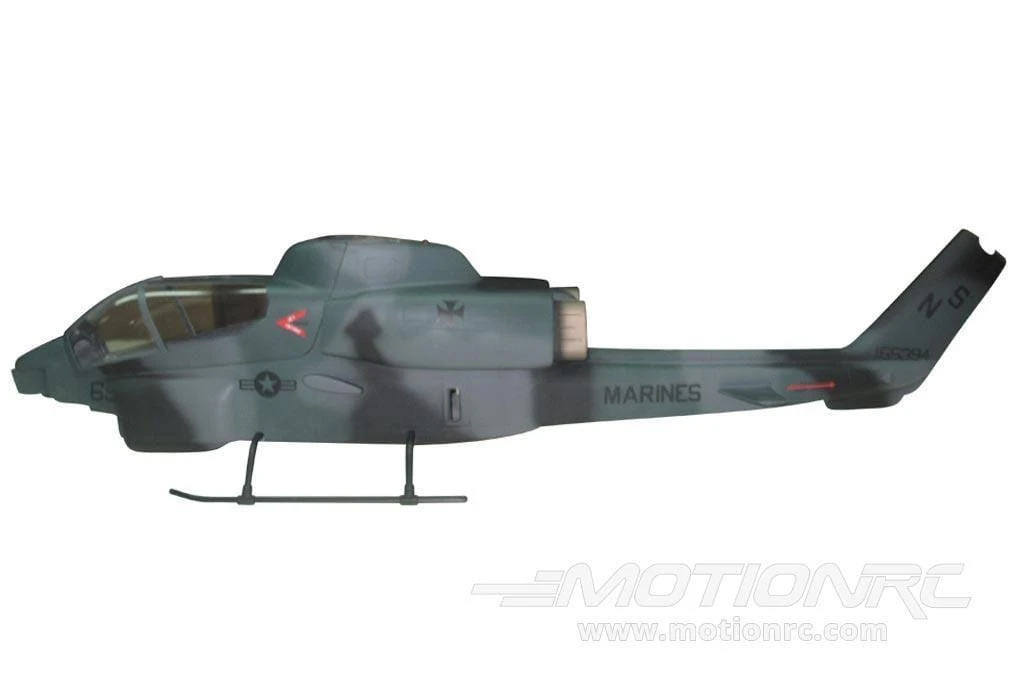 The Roban AH-1 Cobra Camo 500 size is a scale conversion kit modeled after the famous AH-1 Cobra attack helicopter used by the US Marines. This is a premium scale conversion kit that offers tremendous detail. From tip-to-tail the AH-1 Cobra body kit displays an accuracy of detail to the real aircraft not normally seen in the RC helicopter hobby.