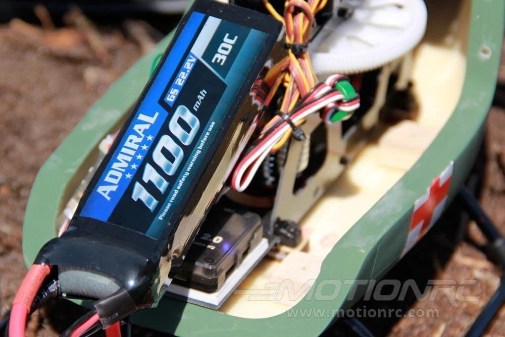 - 4 Cell 14.8V 1600mAh – 2200mAh Li-Po battery with XT60 connector – we recommend the Admiral 1600mAh 4S 14.8V 30C LiPo Battery with XT60 Connector