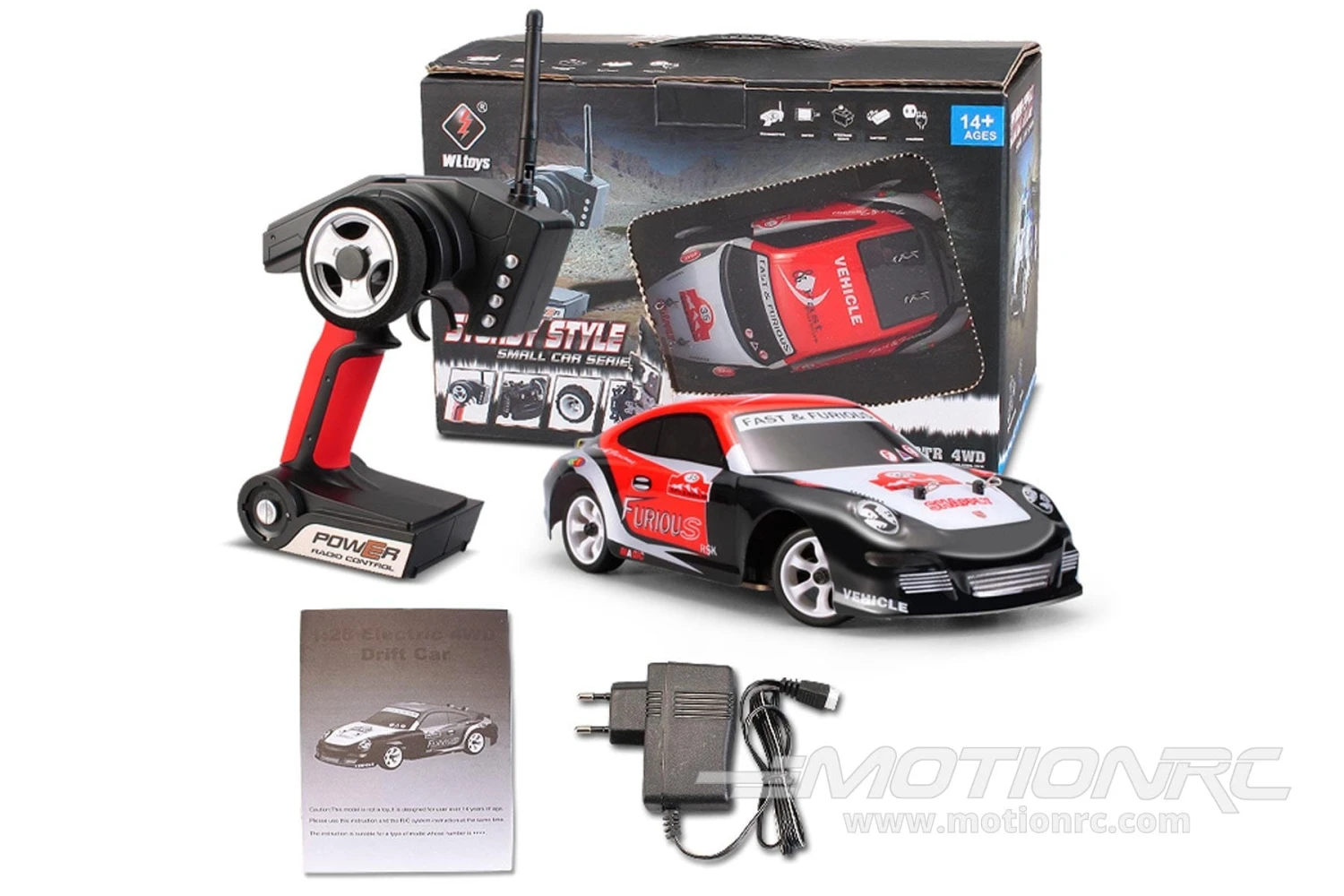 The XK Innovations K969-001 1/28 scale 4WD Drift Car features a capable and durable all-wheel-drive chassis layout topped with a drift car body design that delivers dramatic drifting action and impressive top speeds for a vehicle with a 98mm (3.85”) wheelbase! In addition to a durable aluminum chassis and top plate with convenient access to electronics, the independent suspension with individual coil-over dampers is perfect for high-speed runs and drifts. Similar in size to other series of Mini-class RTRs. This vehicle includes everything you need and arrives at your doorstep Ready To Run, full of fun and backed by Motion RC’s world-renowned customer service and technical support. Drive on!