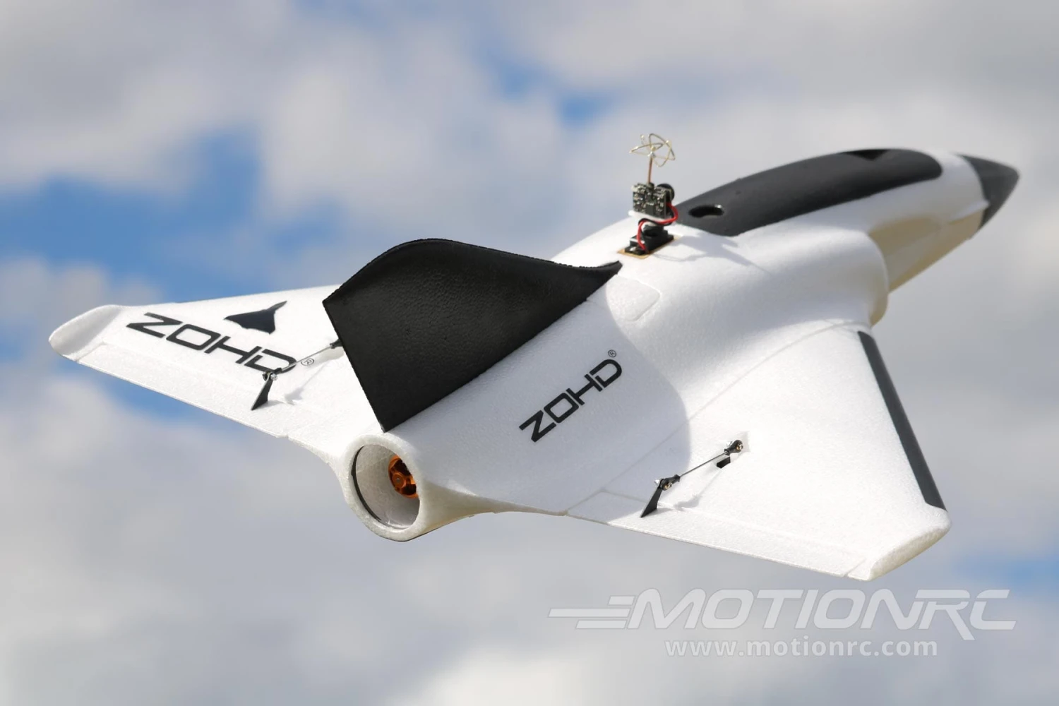 Proudly introducing the new ZOHD MKIII Delta Strike – the first FPV 50mm EDF jet, with a built-in 180° pan servo! ZOHD has touched upon every sector when it comes to fixed-wing FPV platforms: Long-range, speed, sub 250 grams, and everything in between. Now is the time to explore a whole new bold and exciting FPV experience. Take your FPV skills to a new level with this EDF-powered platform. The EDF propulsion system also adds a safety feature, illuminating the risk of getting your fingers hurt from a faulty hand launch.